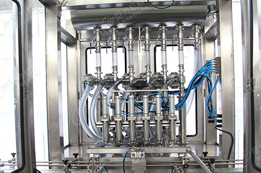 尼為的濃醬灌裝機料箱設電加熱層、保溫層,并裝有物料攪拌機構,通過加熱可以使濃醬產品保持較好的流動性,灌裝更加輕松方便,即使醬內含有微小花生碎也可以順利灌裝。